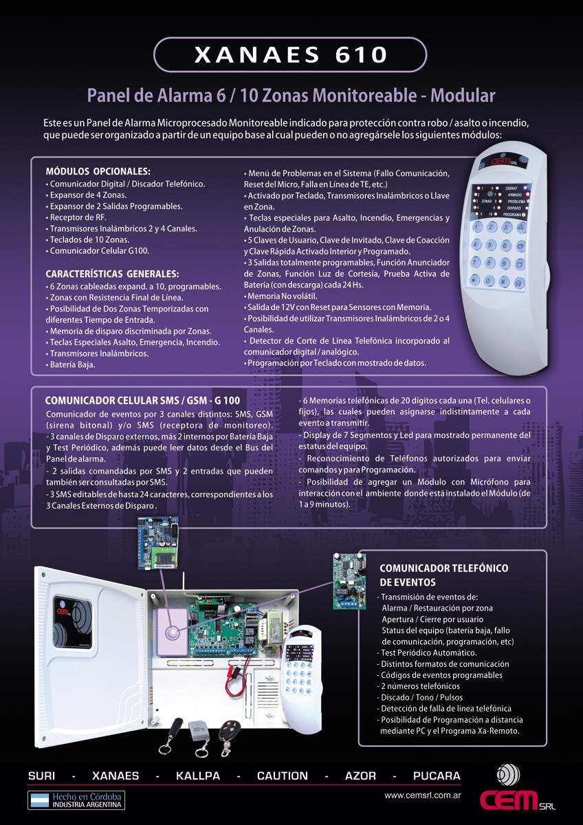 Este es un Panel de Alarma Microprocesado Monitoreable indicado para protección contra robo / asalto o incendio, el cual puede ser organizado a partir de un equipo base al cual pueden o no agregársele los siguientes módulos: